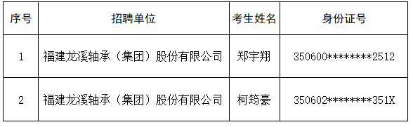 福建龙溪轴承(集团)股份有限公司关于2025年“市属国有企业优质人才储备库”拟聘用人员的公示