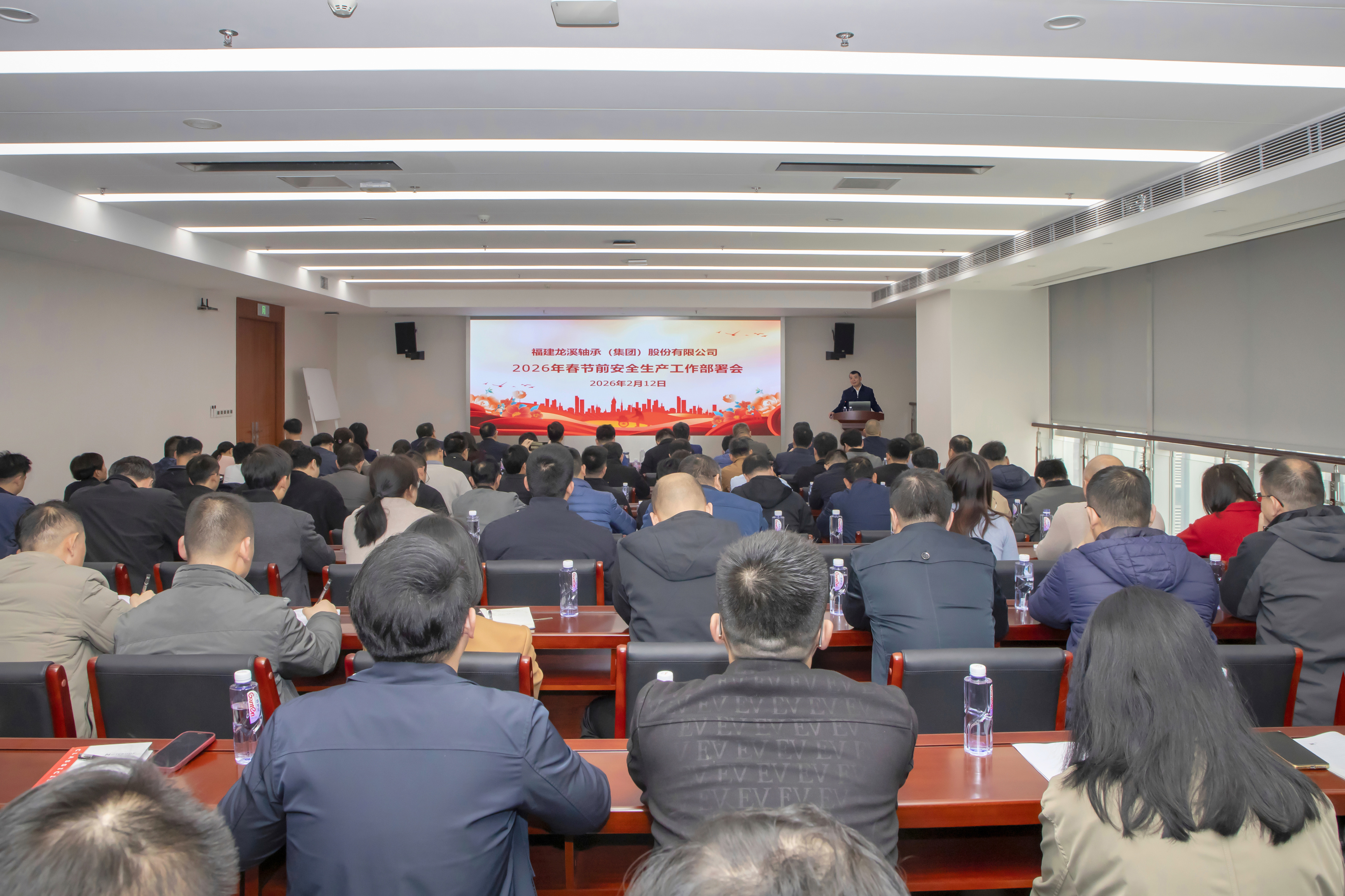 2月12日,龙轴集团召开2026年春节前安全生产工作部署会,会议由集团党委副书记、总经理陈志雄主持,集团党委委员、副总经理黄杰作具体工作部署,集团党委书记、董事长陈晋辉作强调讲话。集团领导班子成员、各权属企业主要负责人、各部室和车间负责人参加会议。
